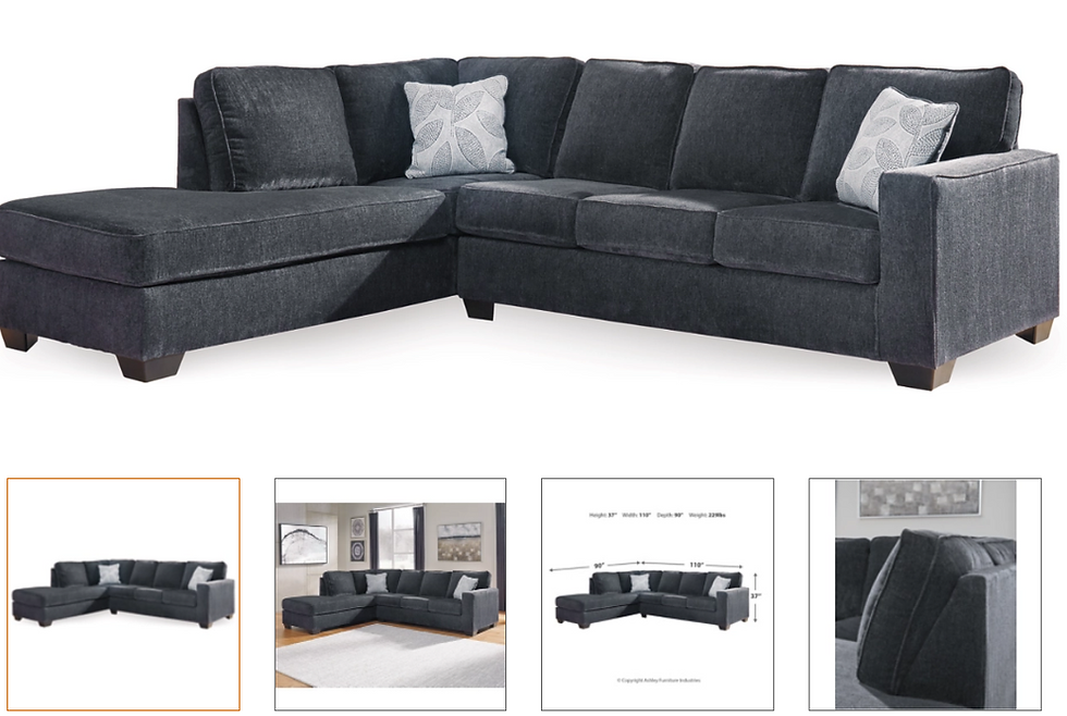 2PCS SLATE UPHOLSTERY SECTIONAL SOFA CHAISE WITH ACCENT PILLOWS
